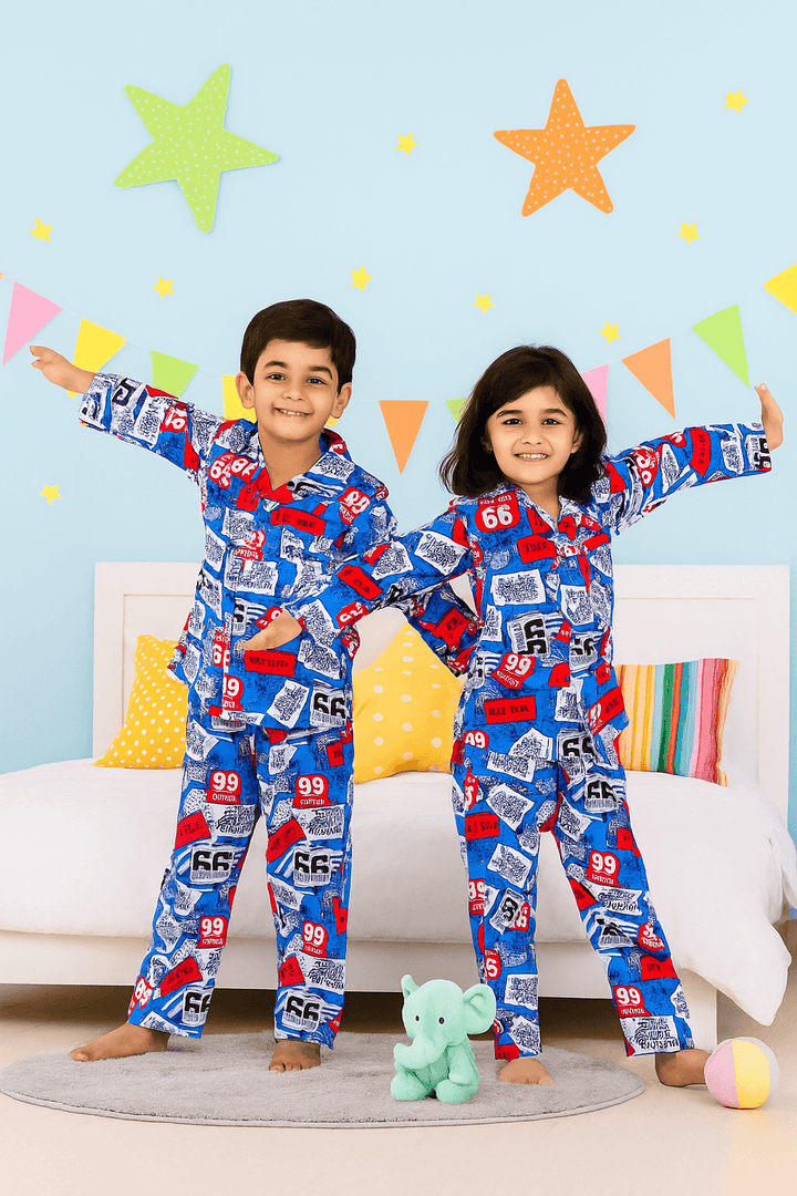 Pc Cotton (50% Cotton , 50% Polyester) Kids Night Suits 100% Real Images Full Sleeves & Full Length Trousers 5-12yrs